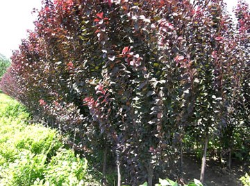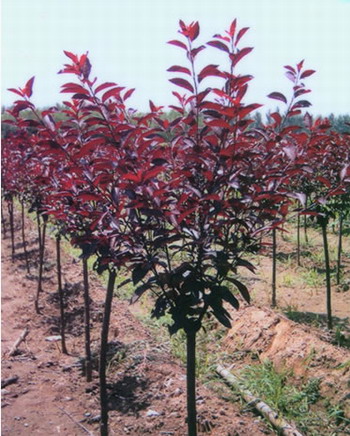枝葉紫紅色,葉亮紅色,從出芽到落葉全是紫紅色,為世界著名觀賞樹種,美國常用做街道、公園、庭院栽植。該樹種發枝力強,耐修剪,可培養成樹形優美的小喬木;也可自幼苗起,加以整形修剪成冠球形。用于城市園林綠地或庭院綠化,以及城市街道的分離帶中,十分適宜;與金葉女貞、大(小)葉黃楊相互搭配,可構成城市綠地中的紅、黃、綠主色調。