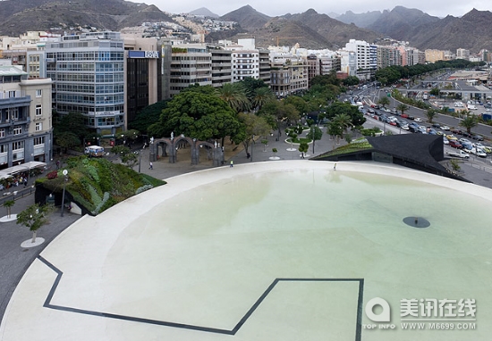 這個美麗的廣場位于西班牙SantaCruzdeTenerife碼頭的附近,將加利群島(Canaryislands)上的各種生態與附近的海洋聯系在了一起。廣場(PlazadeEspa?a)由Herzog+deMeuron公司設計,是一個非常漂亮的綠色的空間,它建造在過去的遺址與未來的城市之上。許多年前,這里是一個“Castillo”古城,水池中的圖案顯示了舊時城堡的地基。水池周圍有許多建筑風景:兩個有著綠色屋頂的建筑,多彩的島嶼生態和地形的多樣性。