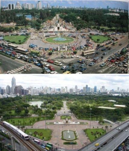 19年時間里,曼谷藍吡尼公園經歷了翻天覆地的變化,摩天大樓拔地而起,交通設施更為先進和完善,只有綠化帶大體和從前一樣。