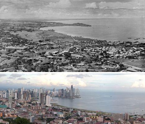 巴拿馬城是世界上發展速度最快的城市之一,兩幅照片呈現的驚人對比就是一個最好的寫照。經過幾十年的發展變化,原來的一座安靜的村莊現在已經變成中美洲發展速度最快的城市之一。