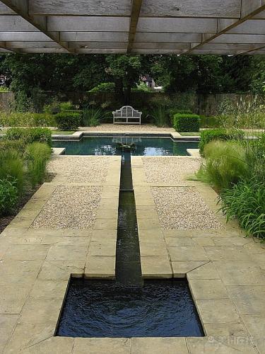 2、巧妙設計,木材結構將景致框架起來,加強花園內部的效果。