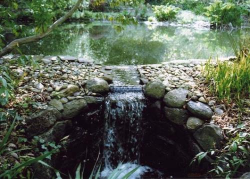 2.湖水流入一個裝飾用的石洞,嘩嘩作響