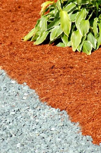 將紅色的樹皮覆蓋物覆蓋在灰色的石頭上一起使用,這組色彩如同藝術品,實在是太棒了!