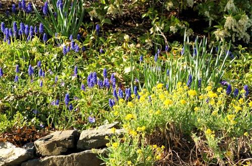 與上一例原理相近,這組色彩使用的是黃色與紫色這一對對比色,這組色彩搭配實現了明亮活潑的視覺效果,且平易近人,避免了紅綠相撞時過于前衛大膽的不適應感。黃色(黃色阿利瑟姆)和紫色(與葡萄風信子)。