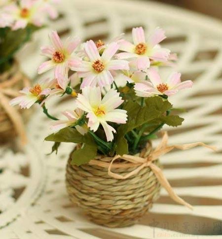 花藝搭配草編花器和蝴蝶結,清純溫暖,不驚艷,不嬌媚,卻以溫情的樣子,觸動歲月里最幸福的日子。小花瓣粉嫩可人,如青澀的少女,干凈得令人欣喜。搭配草編花器,飾以蝴蝶結,清純溫暖,像是初戀時,他送的第一件禮物。放在窗臺上,玄關處,抑或梳妝臺上,滿滿流淌的,是叫做幸福的東西。