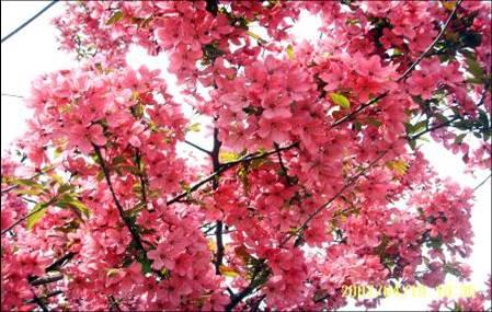 高原之火海棠,花蕾呈紅色,盛花濃紫紅色,顏色最亮麗的品種之一。