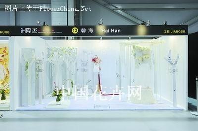 整個展位表現雪景中的植物。白色的背景板、白色的構架、白色的鮮花,清新脫俗,主題突出。