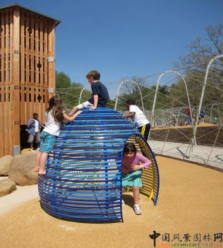 林地探索游樂園設(shè)計(jì)方案的目的是培養(yǎng)兒童在玩耍中發(fā)現(xiàn)探索,鍛煉健壯的身體,發(fā)展健康交往方式,同時(shí)擁抱趣味和快樂。在這個自然的林地環(huán)境中,游樂園提供發(fā)展相互交往和約會的環(huán)境——孩子們必須融入其中,在場地上奔跑,尋找機(jī)會攀爬山坡、坐繩索、坐滑梯、蕩秋千、奔跑、爭奪、探索。游樂場的設(shè)計(jì)建立在對當(dāng)前兒童拓展學(xué)習(xí)形式研究的基礎(chǔ)上,是戶外游樂場所環(huán)境設(shè)計(jì)新典范。