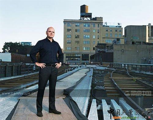 紐約市的高架鐵路公園在去年夏天開放,對那些想要暫避喧囂的街道而尋找一片在天空中更加寧靜綠色“飛地”的當地人和游客都產生了巨大的吸引力。對于一個設施使用壽命終結和雜亂的空間而進行高效、因地制宜地城市空間再利用的實踐方面,紐約市的高架鐵路是一個絕佳的范例。通過把一條已經廢棄的高架貨運鐵路改造成一個公園,這個項目重新定義了紐約體驗,同時帶來了前所未有的環城市自然景觀的視覺景象,以及對世界最有活力的城市環境之一的開闊而詳盡的城市圖景。隨著高架鐵路正在進行的部分即將完工,我們想不到一個更好的時機,來訪問這個美麗公共空間背后的設計者——詹姆斯-科納(James Corner)。于是在隨后的時間里,我與這位景觀設計師進行了對話,以尋找他是如何對將廢棄鐵路轉化成紐約城最受歡迎的綠地之一的景觀之謎。以下是訪談內容。