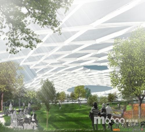 這項工程主要是圍繞一個模塊組合設計,他有五條街長,一條街寬。這個面積為15英畝的地方一部分和原有的城市區域相互融合,同時也穿過了該區域一直延伸到幾條街遠的城市景觀之中。這樣就為人們提供了方面,使他們更好的融入到這個城市的自然環境之中。高架的天棚給人們提供了一定的視野,也使人們可以在這里體驗城市風景,同時增加了游客之間的互動活動。醫療區域、自然區域和空閑的區域有很多。這個地方的建筑還含有可持續的建筑策略,比如洗滌水手機系統,以及能源利用再利用的供暖設施。