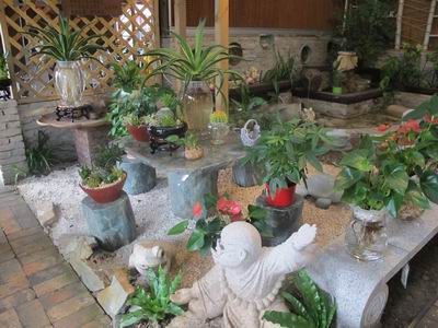 在古道園藝,隨處可見石雕、木雕和各色植物,曾總笑說,“我喜歡擺弄這些東西,不僅銷售還喜歡收藏,在我眼中,他們都是有生命的,有自己的獨(dú)特個性的,掌握了他們的特性,在設(shè)計中將他們最美的一面展示出來。”是的,從水景噴泉到植物搭配,從假山景石到木質(zhì)結(jié)構(gòu),從涼亭花架到風(fēng)水玄冥,曾總都有著自己的設(shè)計理念和施工經(jīng)驗(yàn)。“作為一個設(shè)計師,我不能說是‘八面玲瓏’,也可以說是‘面面俱到’了。”曾總笑道。一個好的設(shè)計師必須掌握植物、材料等各方面的知識,才能恰當(dāng)?shù)剡\(yùn)用到設(shè)計中去。一知半解只能造成材料和人力上的浪費(fèi),達(dá)不到理想中的設(shè)計效果。