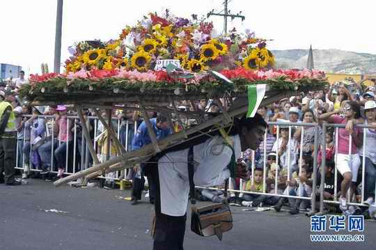 哥倫比亞鮮花節“背花人”游火熱上演