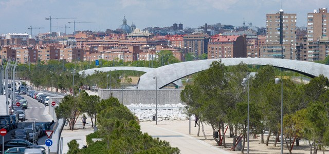 west8景觀事務所與MRIO設計團隊一起為馬德里河岸重建項目及M30高速公路隧道上的城市新區制定了總體規劃,將Arganzuela公園和Salonde Pinos綠地用慢行橋梁--Cascara大橋相連接。