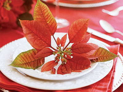 隨手掐一枝圣誕花,放在盤(pán)子上,簡(jiǎn)單優(yōu)雅,你的餐桌立刻就充滿了節(jié)日溫馨的氣氛!如果能在上面系張卡片,寫(xiě)上就餐者的名字和對(duì)他們的祝福,更能將驚喜升級(jí)!