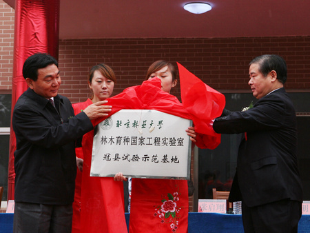 校長(zhǎng)宋維明為北方平原林業(yè)創(chuàng)新與良種示范基地揭牌