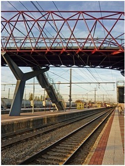 大橋設(shè)有多條可以直接進(jìn)入車站站臺的通道,由此來實現(xiàn)行人直接進(jìn)入車站的功能。一個長達(dá)280米的緩坡將大橋不同部分連接在一起,坡度按照自行車的使用標(biāo)準(zhǔn)設(shè)計,保證行人及騎行者的使用舒適度。橋梁主體部分長達(dá)112米,底部由五個極具雕塑感的排列架支撐,構(gòu)成一個多功能的使用空間,橋梁緩坡下有可同時放置400輛自行車的停車場,同時還容納了非盈利性組織velo的辦事處。