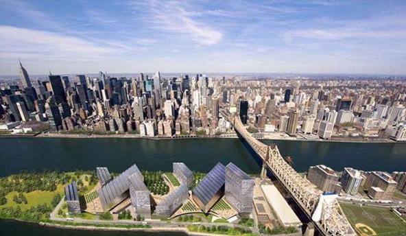 這座占地4公頃的校園名為“紐約城科技園”,位于羅斯福島,將是一個零碳校園,包含了一系列可持續性技術,如1.8MW的太陽能發電系統、地源熱泵系統和雨水回收系統等。