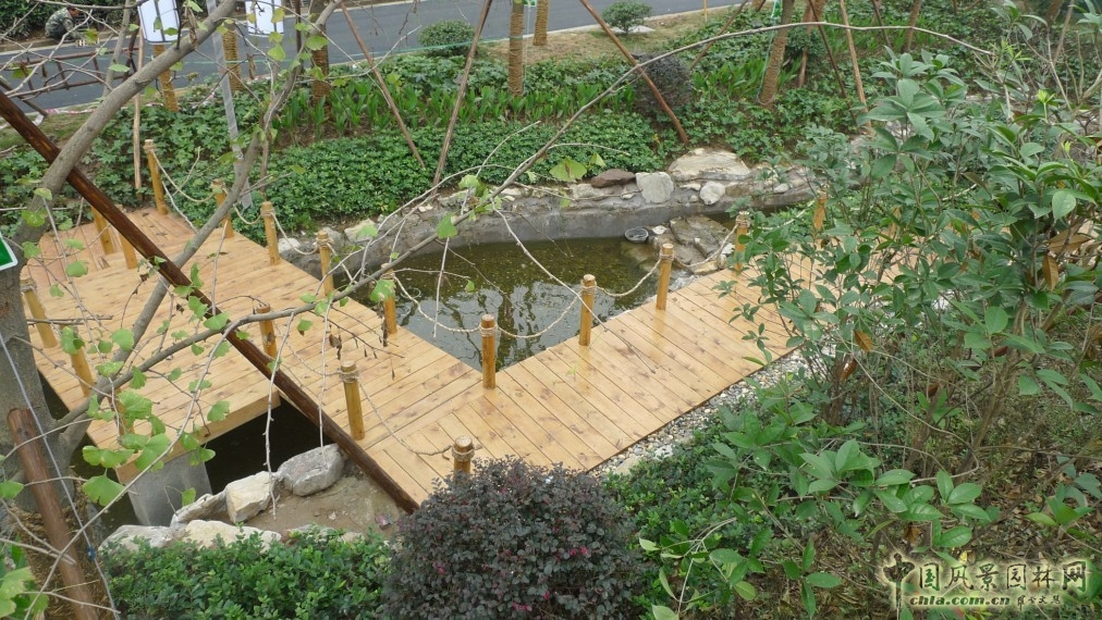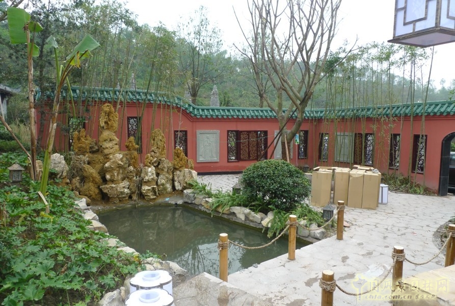 園林內(nèi)設(shè)置多樣水體形式:瀑布水潭、放大水面、亂石跌水、景觀小溪、亂石跌水。并形成水系生態(tài)循環(huán)系統(tǒng),使水系具備自凈功能,避免水體富營(yíng)養(yǎng)化。
