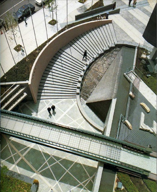 中國風(fēng)景園林網(wǎng)訊 基街克萊德是位于廣島市中心的大規(guī)模復(fù)合性商業(yè)設(shè)施,是佐佐木先生早期的代表作之一。整個(gè)作品通過光。風(fēng)、時(shí)空、水之通道等貫穿整個(gè)建筑物的立體空間,形成可環(huán)游的庭園。從地下到地面,再到屋頂庭園的空間變化,給人視覺、聽覺、觸覺、嗅覺等感觸,使空間具有豐富的景觀內(nèi)涵。