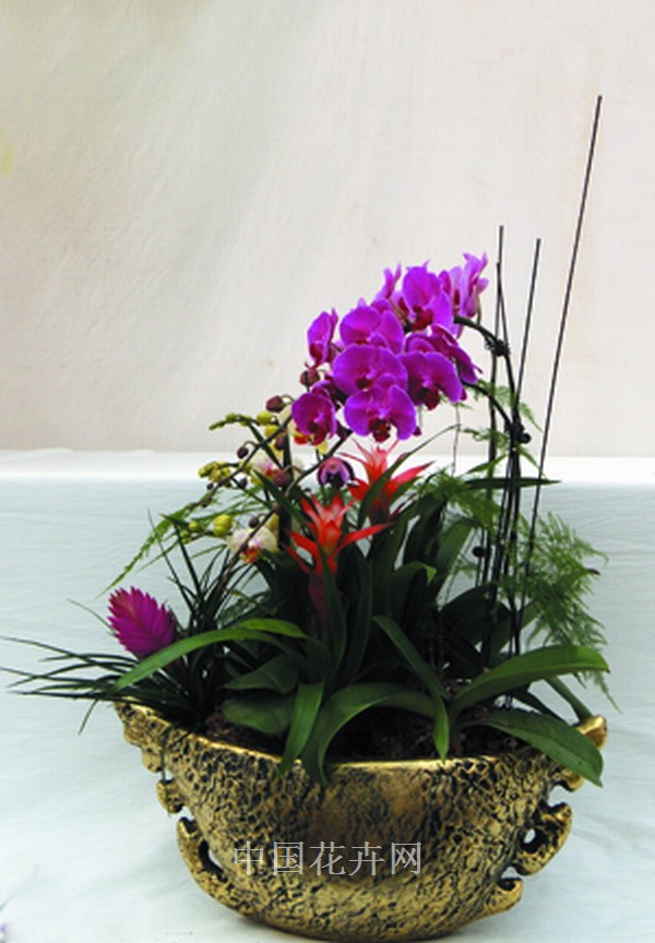 產(chǎn)品組成中,盆器需100元;大花蝴蝶蘭35元/支,需3支;迷你蝴蝶蘭25元/支,需3支;鳳梨30元/盆,需3盆;金邊蘭6元/盆;文竹6元/盆;長春藤3元/盆;另需輔助資材20元左右,包括爆竹、蘑菇、絲網(wǎng)、緞帶等裝飾品,成本總計(jì)僅需400元,市場(chǎng)零售價(jià)為600元以上。