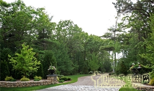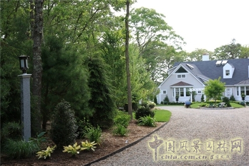 庭院有一條400英尺的長(zhǎng)走道,設(shè)計(jì)中,設(shè)計(jì)師很少對(duì)這條長(zhǎng)走道作改動(dòng),因?yàn)殚L(zhǎng)走道曲折蜿蜒,可以產(chǎn)生很多樂(lè)趣和戲劇性的效果。為與當(dāng)?shù)貪竦叵噙m應(yīng),保證車(chē)道有一定的滲透性,設(shè)計(jì)采用小卵石和堅(jiān)固的外邊緣作鋪裝,同時(shí)對(duì)入口也作了特別的設(shè)計(jì),為保持庭院的外輪廓,她添加了低矮圓柱和石頭墻。路邊向安裝了燈和花崗巖燈柱組合,作為入口的光源。