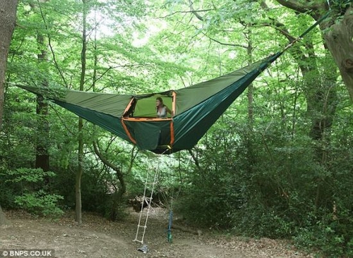 據國外媒體報道,英國建筑師亞歷克斯·謝里·史密斯設計了一種可以架設在樹上的帳篷,距地面10英尺(約合3米)。這種帳篷名為“Tentsile”,較大的版本造價7500英鎊(約合11885美元),可容納8人或者5噸貨物,設計靈感來源于蜘蛛網。