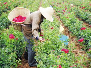 每天清晨六點多,當整個曲靖馬龍縣舊縣鎮小房子村還沉浸在一片安寧與寂靜中時,云南嘉華農業科技有限公司的采摘員胡躍就早早起床,簡單洗漱后和同事直奔上千畝的玫瑰花種植基地,第一時間采摘伴著晨露的新鮮玫瑰花。“玫瑰花采摘是一項非常講究的工作,采摘時間必須是在早上9點之前,因為9點之后氣溫開始上升,鮮花的香氣會隨著氣溫的升高而揮發,影響玫瑰花的質量。”說起新鮮玫瑰花的采摘常識,今年20多歲的胡躍儼然是一個行內專家。