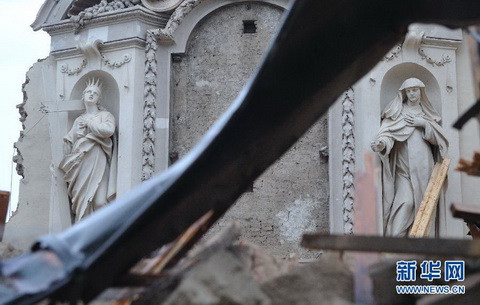 5月20日,在意大利地震災(zāi)區(qū)圣卡洛,一座小教堂在地震中倒塌。意大利北部艾米利亞-羅馬涅大區(qū)20日凌晨遭遇里氏5.9級地震,造成至少7人死亡、50人受傷,多棟建筑被毀,約3000位居民被緊急疏散,整個意大利北方均有震感,當(dāng)?shù)匾恍v史性建筑嚴重受損。新華社記者王慶欽攝