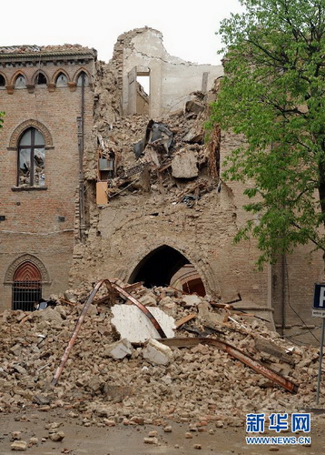 5月20日,在意大利地震災(zāi)區(qū)波焦雷納蒂科,當(dāng)?shù)亟ㄓ?9世紀的市政廳塔樓在地震中倒塌。意大利北部艾米利亞-羅馬涅大區(qū)20日凌晨遭遇里氏5.9級地震,造成至少7人死亡、50人受傷,多棟建筑被毀,約3000位居民被緊急疏散,整個意大利北方均有震感,當(dāng)?shù)匾恍v史性建筑嚴重受損。新華社記者王慶欽攝