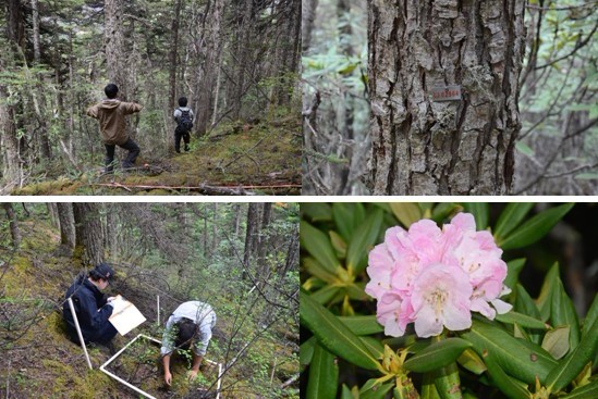 考察隊在沿途中調查了白馬雪山目前的森林現(xiàn)狀,并確定在埡口方向設立永久性小樣地。樣點為海拔4100-4200m的長苞冷杉、杜鵑林群落,包括3個20m*50m的樣方、喬木樣方(10m*10m)、灌木樣方(2m*2m)和草本(1m*1m)樣方各共計30個。此外,從當?shù)匾N遷移了杜鵑屬植物、報春屬等植物,共計15個種450個個體。