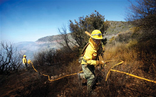 干旱高溫、地勢崎嶇的救火現(xiàn)場