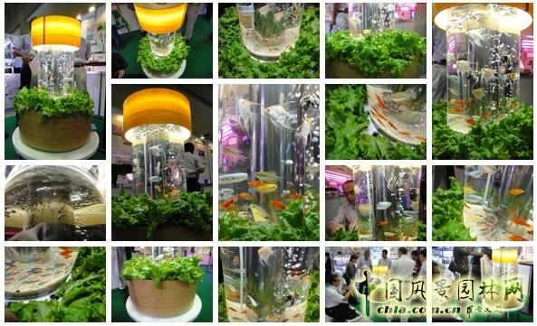 中國風景園林網(wǎng)訊 魚菜共生體系是由日本帝人集團開發(fā)研制的,作為有益于健康的室內(nèi)陳設。它是由一個魚缸和一個蔬菜種植機組成的,他們之間是通過管道連接在一起。在這個共生封閉的環(huán)型培養(yǎng)體系中,利用魚的排泄物作為營養(yǎng)提供給植物生長。這種緊湊的設計——水,觀賞魚和蔬菜都在一起,能夠被看到,是由一個水族館生產(chǎn)公司a.c.c.設計制作的。