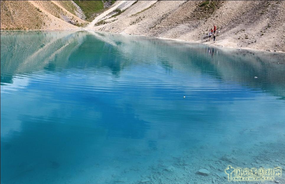 青綠色的石灰巖群山圍繞著迷人的湖水