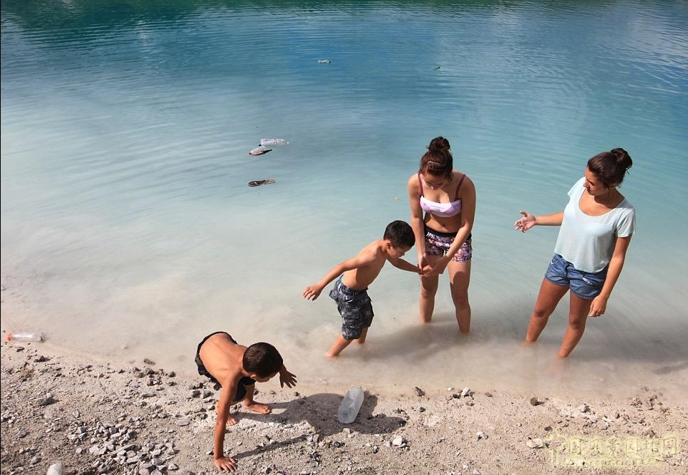 乍一看,孩子們好像是在一個幾千英里外熱帶海灘玩耍,但這實際上是在峰區,湖水色彩由于石灰巖和巖石區才的變化引起的。
