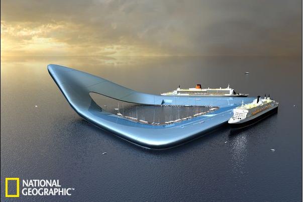 這座面積49萬平米的浮動式游艇碼頭可以???艘大型輪船并讓乘客體驗到一種新奇的離岸享受,美麗的公海酒店,購物,用餐。