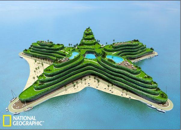 這座建筑預計將于2014年開幕。這就是坐落在印度洋馬爾代夫海岸外的綠海星浮動酒店和會議中心。這個島國是全世界海拔最低的國家之一,它也因此成為全世界受到全球變暖和海平面上升影響最嚴重的國家之一。