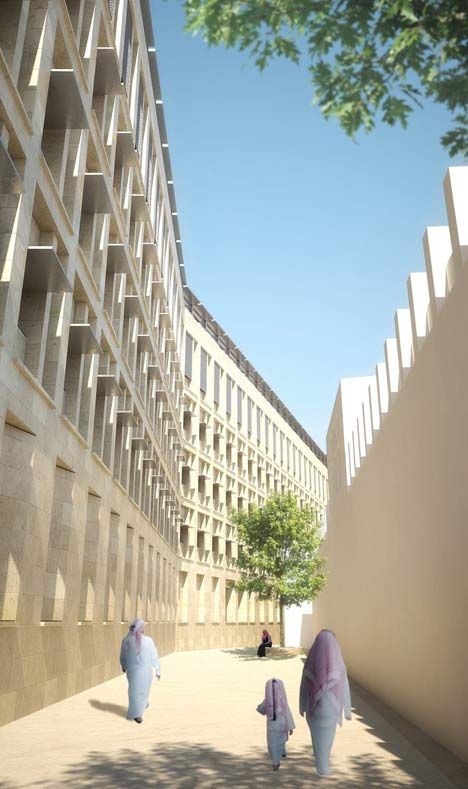 項目設計師通過研究多哈歷史航拍照片,設計出遵循卡塔爾傳統街道樣式的布局圖,并將其與滿足現代交通需要的直角規劃方案相結合。