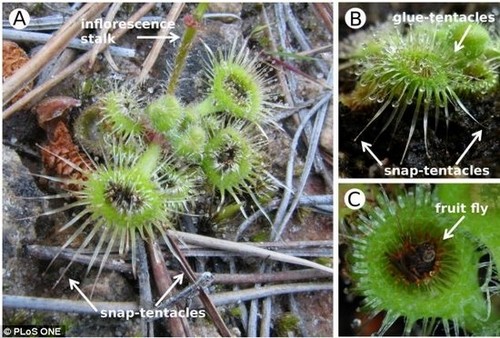 研究報告作者稱,這種彈射誘捕觸須能夠增大葉片誘捕范圍,其有效性遠超過粘性觸須,或者使這種植物能夠捕獲體形更大的昆蟲,尤其是那些足以逃脫粘液陷阱的昆蟲。