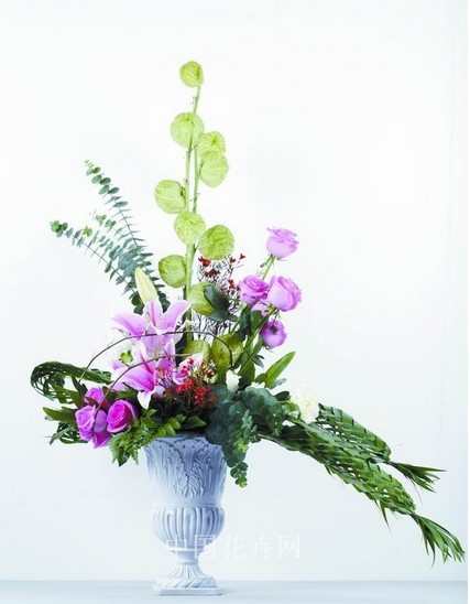 不對稱三角形插花是以不等邊的構(gòu)圖方法來完成的,與對稱三角形相比更活潑,更具有變化及設(shè)計(jì)性。本期由來自北京的花藝師童春華示范這樣一款作品。