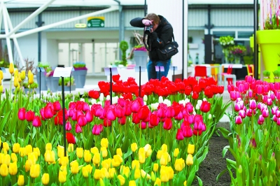 據了解,庫肯霍夫公園每年會選擇一個國別展示主題,今年是英國。去年秋天,庫肯霍夫的園丁們共植下了約700萬株球莖花卉,其中絕大多數是郁金香。利用這些花卉,園丁們拼出了諸如倫敦大本鐘、塔橋等英國名勝的圖案。不過,這些圖案現在只能看出大概的輪廓。