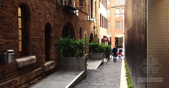 悉尼南方的娛樂區(qū)奧爾濱的建筑,例如寫字樓,藝術館,旅館等,已經從傳統(tǒng)的磚質結構變成了混凝土以及不銹鋼材質。花架與座位露臺的融合打破了車道的縱向空間,更好的將電影院墻邊的用餐區(qū)域與其他環(huán)境均勻的分開。原有的花崗巖鋪砌的結構被鑿出一道裂痕,露出沙礫的邊緣,看上去有一種原生態(tài)墻壁的感覺。防火疏散門的門洞被轉換成為‘防火門美術館’,舉辦一系列由著名藝術家羅琳羅斯威爾創(chuàng)作的不銹鋼藝術品。這些藝術品由不銹鋼光柵框架。新的照明系統(tǒng)為戶外用餐創(chuàng)造了氛圍。運動走廊已轉換成一個活躍的公共空間,人們可以在這里散步,來感受這里獨特的氣息。