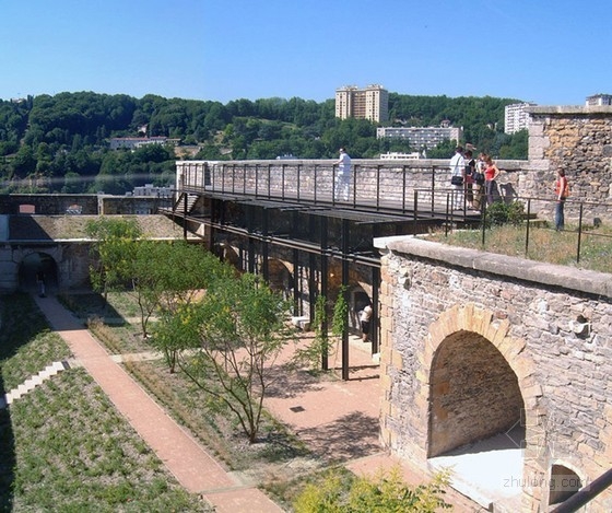 在里昂市,珍妮城堡坐落在索恩河左岸的石質(zhì)岸邊。這個(gè)工程結(jié)合了新式的公立學(xué)校,并且用非常漂亮的建筑景觀成為當(dāng)?shù)氐囊坏廓?dú)特的風(fēng)景。在這個(gè)城堡的中心,d’Armes宮殿是一個(gè)大的石質(zhì)建筑群,每一個(gè)部分都是由石灰?guī)r建成。作為這個(gè)城市的窗口,這個(gè)地中海式花園展現(xiàn)出一種地中海式的景色,包括常綠的樹(shù)木和各種花草。各種不同風(fēng)格的花園被墻連接起來(lái),就像一個(gè)個(gè)的同心圓一樣。這樣從上方俯瞰,可以看到各種各樣的風(fēng)格景色。在每個(gè)區(qū)域,都有各自的特色,不同的文化氣息。這里生長(zhǎng)著各種各樣的樹(shù)木,有猶太鳳梨,大的景天屬植物,皂莢樹(shù),紫藤和各種花草,美不勝收。