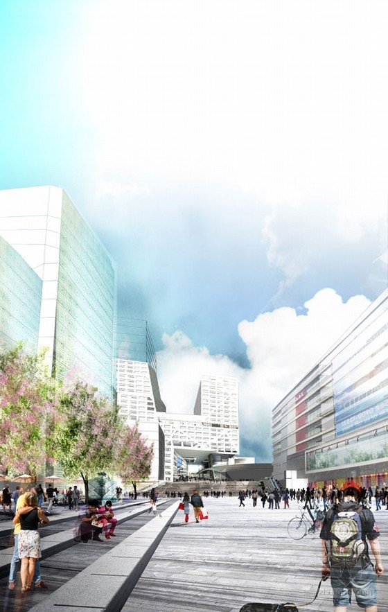 他們將注意力放在了完美停車體驗上,并通過舒適、充滿活力及安全的頂部城市廣場并辨識度高且誘人的設計整合并傳達給人們。新Jaarbeursplein的形象是對大量流動行人的合理安排;并通過強有力的聯系將廣場空間及周圍實體建筑整合在一起。地下與地上的世界通過邏輯聯系方式連接在一起。Jaarbeursplein形成了烏特勒支的新臉面。它將極其重要、具有大都市風范并且高度動態化。這座廣場將作為未來發展的驅動力。在接下來幾年,通過一系列建筑,Jaarbeursplein將逐步從現有的居民區轉變為高質量的城市空間。
