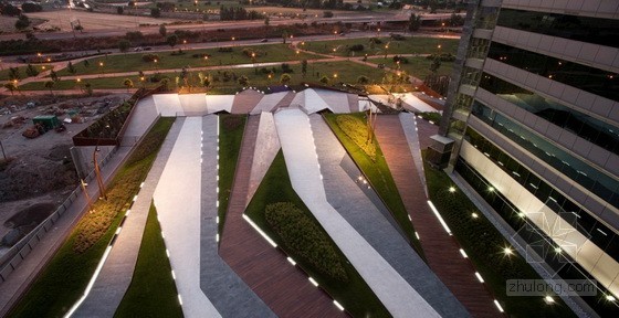 整個廣場的空間劃分形式比較靈活,看起來如同一塊被力量和溝渠劃分的地毯,主要是作為一處公共活動空間,為人們提供休閑娛樂的場地。
