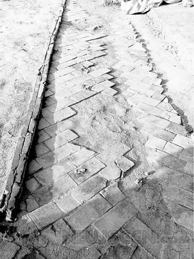 考古現場有青磚鋪成的路,在唐朝,能用上磚的建筑,規格都比較高。