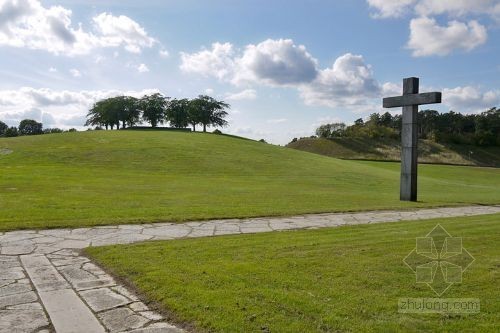 如今的小禮拜堂在形式上略顯拘謹,但是在材料的選擇上,卻非常富有,阿斯普隆德專門請來的藝術家為這些建筑物進行裝飾,而今人們看到的公墓是分散的位于松樹林中。還有一片紀念性的小叢林和一個紀念碑土墩,在戶外,還有一個骨灰安置所。斯科斯累格加登的南面有一個小涼亭,這里有一個長期對外開放的展示會,向人們展示有關這個公墓和兩位建筑師的故事。