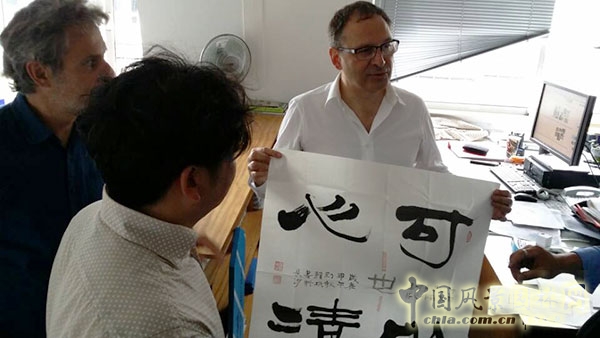 此次交流,使德法考察團(tuán)獲益匪淺,更使考察團(tuán)成員與岱禾的設(shè)計師們結(jié)下了深厚的友誼。考察團(tuán)成員——湖南農(nóng)業(yè)大學(xué)唐賢鞏教授更是將自己的書法作品贈予岱禾景觀事務(wù)所,借此表達(dá)德法考察團(tuán)的美好祝福,同時象征雙方情誼長存。