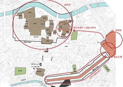 它是以2011年3月 “博多站大樓”重建為契機(jī),對商業(yè)綜合設(shè)施、站前廣場、博多站前大道及周邊樹木、人行道照明等設(shè)施進(jìn)行的綜合整修工程。該工程的實施加強(qiáng)了城市中心“天神”與“運(yùn)河城”之間的聯(lián)系,提高了游客的便利性。車站周邊保留了很多寺院、神社、佛閣及中世紀(jì)歷史文化特色濃郁的地區(qū),并于今年3月建成了引導(dǎo)博多站來訪游客至“御供所”區(qū)域的歡迎之門——博多千年門。在福岡市政府與地區(qū)管理團(tuán)體、企業(yè)、地區(qū)居民的共同努力下,本地區(qū)的景觀、街道的維護(hù)保護(hù)工作與以前相比得以更積極的推進(jìn)。