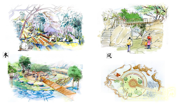 利用地形和植物景觀劃分空間,盡量減少道路交通帶來的不利因素,從而塑造出安靜休閑的景觀環境,使游人尤其是附近居民能夠最大限度使用空間。局部地區微地形處理,豐富空間景觀,場地與山體交接處注意地形的過度處理和利用。