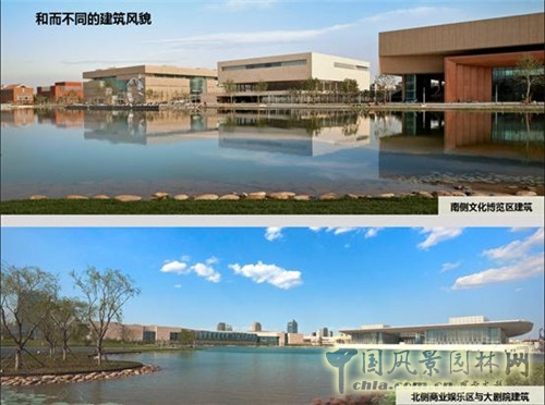 但是,對現(xiàn)代建筑來說,如何在中心城區(qū)中做好城中的繼承呢?我將以我們所做的天津文化中心為例來講解。該項目位于城市的中心,就相當于北京的天安門、上海的人民廣場一樣。因為天津600年一直沒有中心,這幾年,伴隨著天津的發(fā)展,逐漸意識到天津需要一個城市中心。那么,用什么去做中心?用文化去做中心再合適不過了。所以,在這個城市中心,設(shè)置了博物館、美術(shù)館、圖書館、大劇院以及其他的活動中心,把市委、市政府等政府類建筑放到周邊,體現(xiàn)出它的人文性和功能性。這在中國城市的建設(shè)中是非常少有的做法。那么,在這個區(qū)域當中如何來把控?我想,需要的是用整體性來把控城市中心。我們中國做了很多這種城市中心,但是就缺乏整體的把握,有些甚至出現(xiàn)了城市的亂象。對于這個區(qū)域來講,以山、水、塔、樓構(gòu)架城市中心,在植物選擇上面也要體現(xiàn)整體性的把控,因此我們在綠化過程中,盡力尋找一種有特色、能開花的樹種作為這個區(qū)域的代表。起初選擇了櫻花,后來選擇了適合天津當?shù)貧夂虻奈鞲L模?600棵的西府海棠組成一個海棠區(qū),等到4月份開花的時候,這個地方便會像華盛頓DC一樣,作為城市的一個節(jié)日區(qū)域來打造。